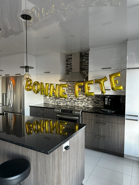 BANDEROLE EN BALLONS - BONNE FÊTE - MYLAR 16PO DORÉ-ARGENT-ROSE-GOLD