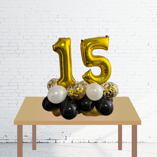 CENTRE DE TABLE - AVEC CHIFFRE DOUBLE 16 PO. ET CONFETTIS